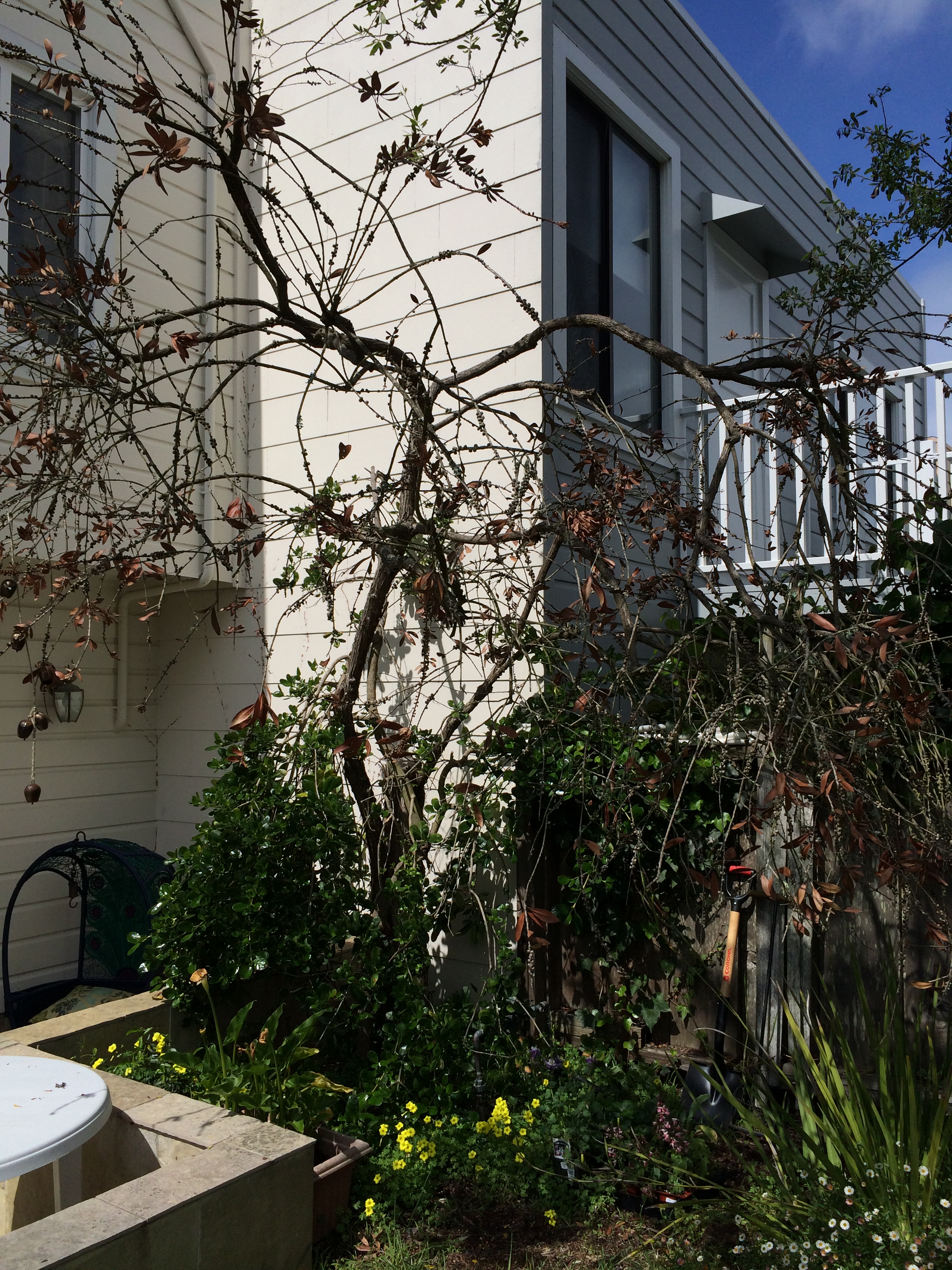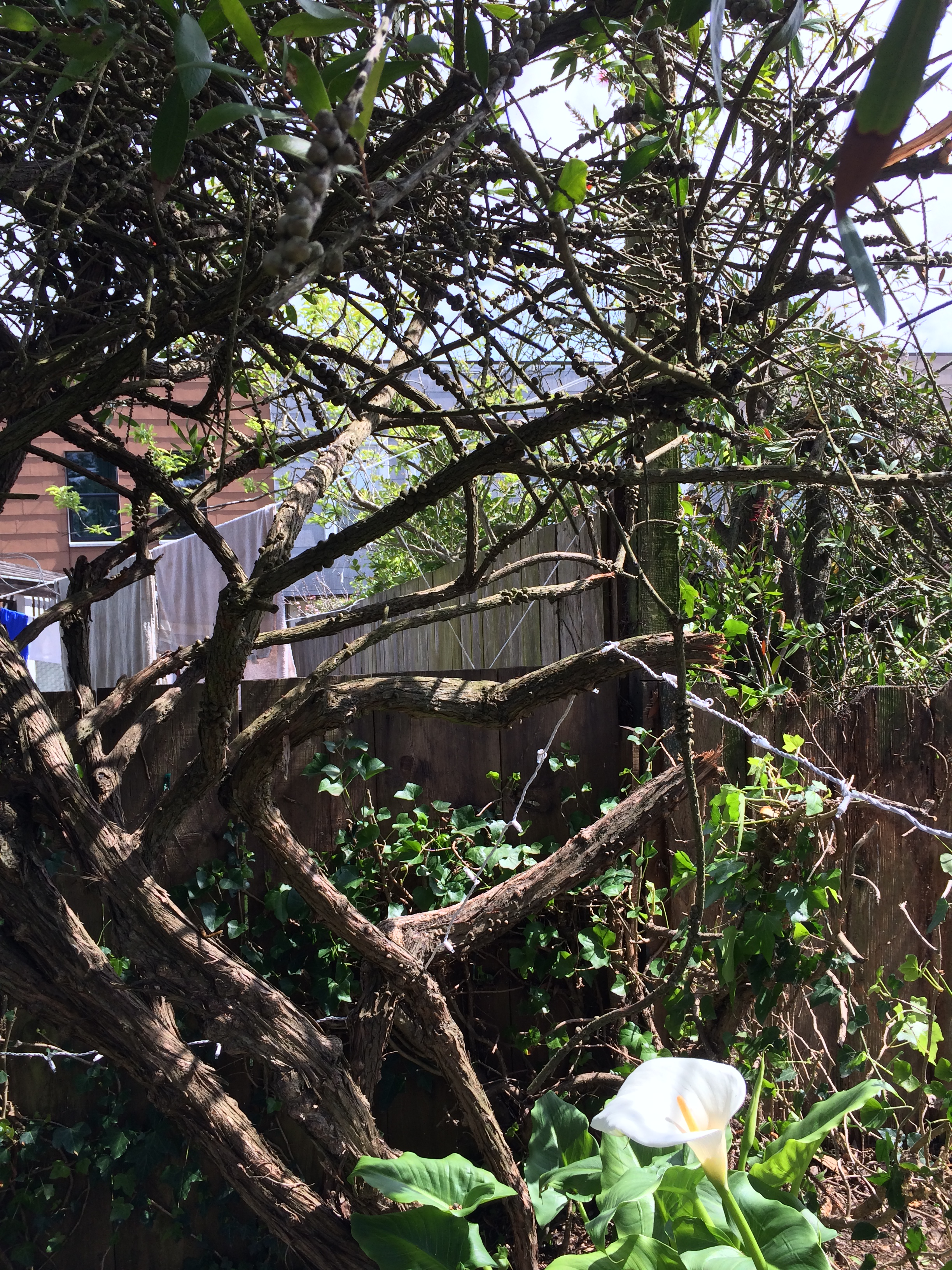 This morning I awoke to the sound of the fence in my back garden being torn down. Stepping outside I saw the ivy growing along both sides of the fence had been ripped away, and the two trees that grow directly against the fence had had their branches severed directly along the property line. Although the trunks of these trees stand on our side of the fence, because our garden is north of the neighbor’s the trees have grown with their branches reaching south toward the sunlight, and a significant amount of each tree had been wantonly removed. After some research I learned that everything that had transpired was legal, unless the trimming of the trees eventually causes them to die. How might this situation have unfolded differently if trees themselves were accorded their own rights, and their legal standing was not contingent upon the rights of the owners on whose land they grow?