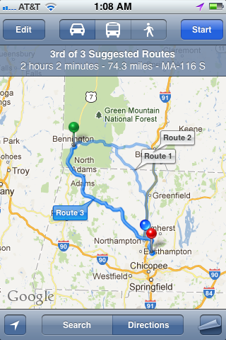 Matt and I left Bennington in the late morning and took a lovely winding route through the Green Mountain State, definitely feeling the new weight in the car of all my possessions. The trees were so numerous there seemed to be more green to the state than mountains, although plenty of plunging cliffs and rocky streams paralleled our road offering the most varied topography of the trip so far. The road wove between little coffee roasteries, garden shops, and other businesses with such quaint names as Amaranth Gardens, Bodhi Books, Strawberry Fields, and we even saw a Vipassana Meditation Center. Between the apple orchards and horse farms the occasional ancient graveyard stood with faded, moss-enshrouded stones, a clear indication that this is the longest settled portion of the country by European settlers.