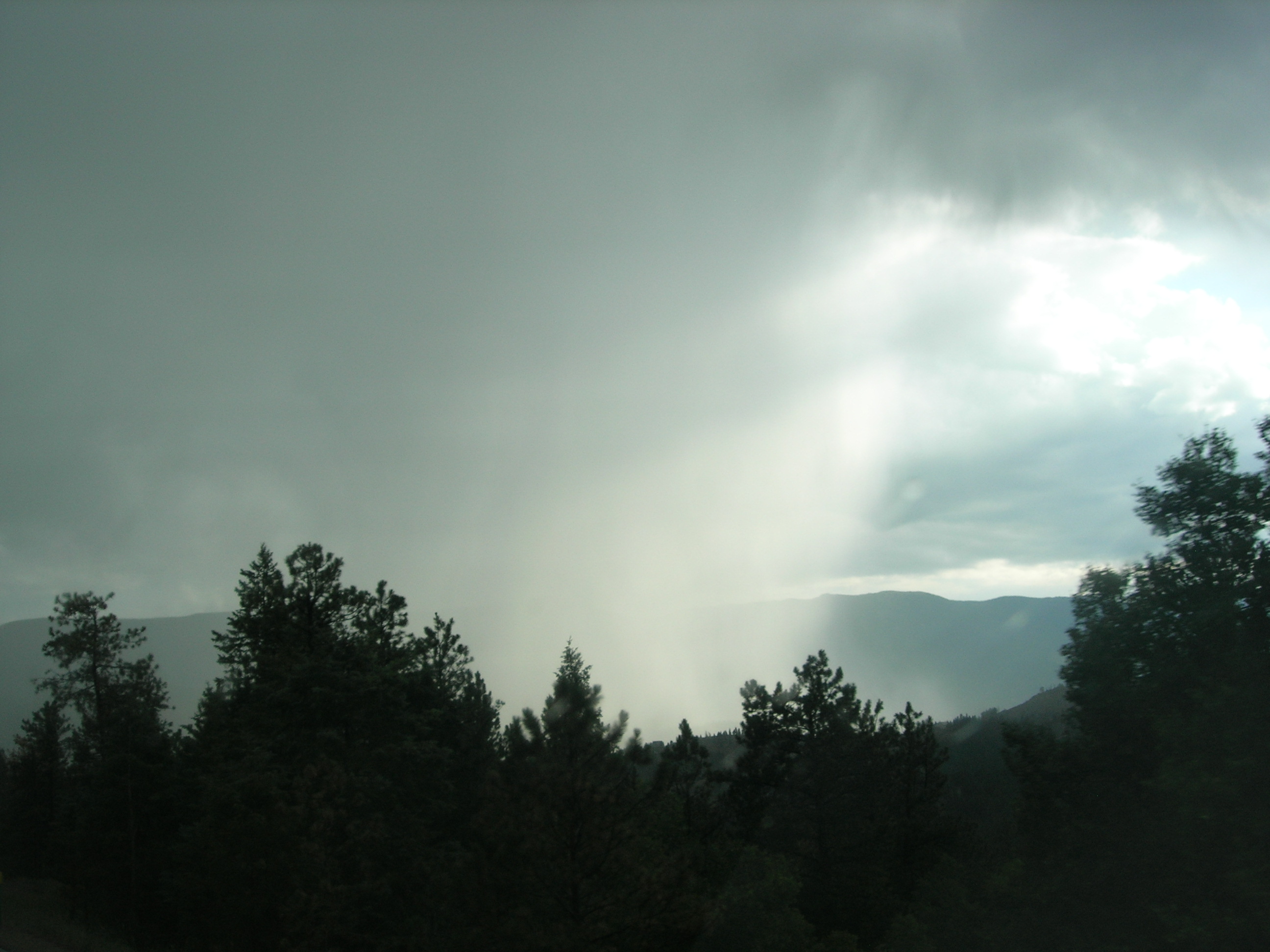 Then, in the far western distance, clouds began to gather. A deep azure shadow blurred the once clear edge of the horizon. Rays of sunlight cut through the clouds to illuminate the land. Planes trafficked the air, criss-crossing the skies. Denver. A city, trees, hills, mountains, then thunderheads, each layered against the next. In a matter of minutes the plains were a mere memory.