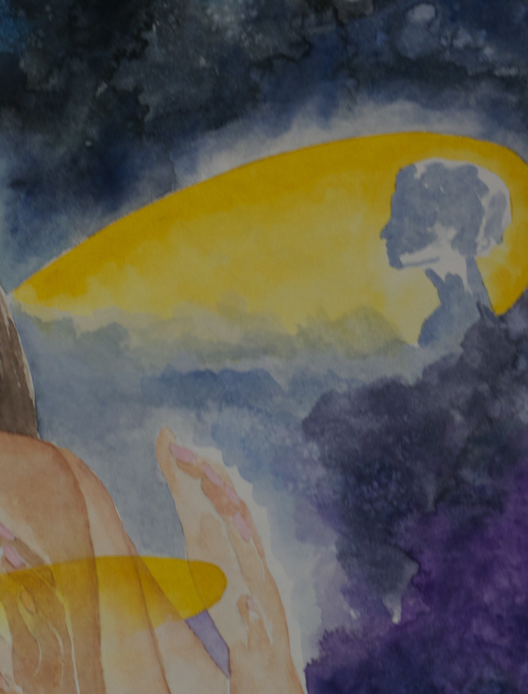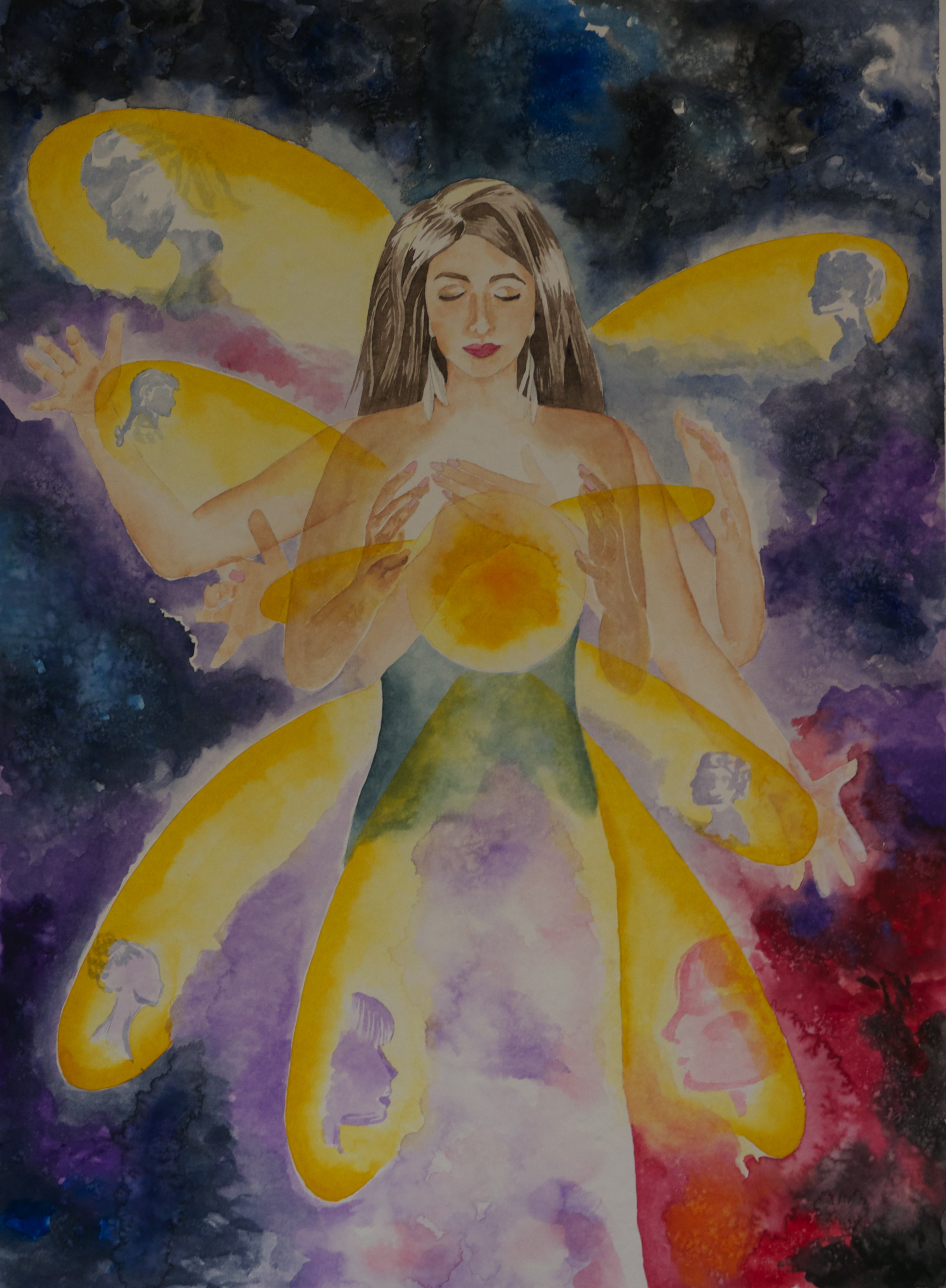 This series of four paintings is a visual response to the content of Chris Bache’s course The Birth of the Diamond Soul, offering different images of the reincarnating soul both inside and outside the influence of time and space, as well as an homage to the devastation of the ecological crisis and how it may be the catalyst for the forging of the Diamond Soul.